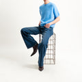 Zeroassoluto-Maglia girocollo mezza manica BABY ALPACA SUPERFINE ELASTICIZZATA - azzurro