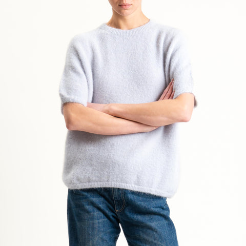 Zeroassoluto-Maglia girocollo mezza manica BABY ALPACA SUPERFINE ELASTICIZZATA - perla