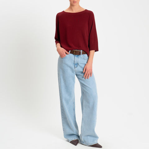 Kontatto- Maglia scatola girocollo manica 3/4 - vino