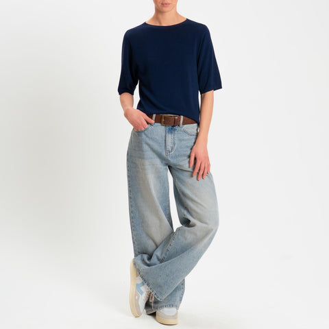 Kontatto- Maglia girocollo manica 3/4 - Blu