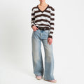 Tensione in-Maglia scollo v a righe - moro/bianco