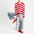 Tensione in-Maglia scollo v a righe - rosso/bianco