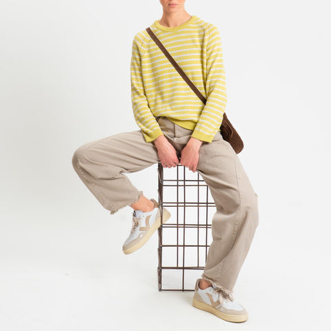 Zeroassoluto-Maglia righe calatura spalle - lime/ecru