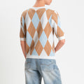 Tensione in-Maglia argyle manica corta viscosa soft- burro/camel/celeste