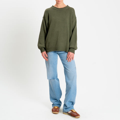 Vicolo-Maglia girocollo bordi a coste - militare