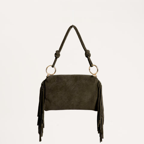 W by Whitemood- Borsa a spalla scamosciata con frange - militare