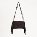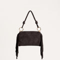 W by Whitemood- Borsa a spalla scamosciata con frange - moro