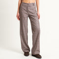 Zeroassoluto-Pantalone LETY wide leg - micro check sand/vino/verde