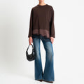 Tensione in-T-shirt doppio tessuto con pizzo - cioccolato/cioccolato
