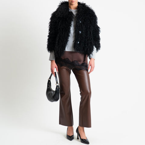 Tensione in-T-shirt doppio tessuto con pizzo - grigio/cioccolato