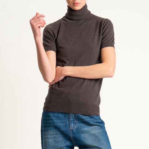 Zeroassoluto-Maglia collo alto mezza manica - cioccolato