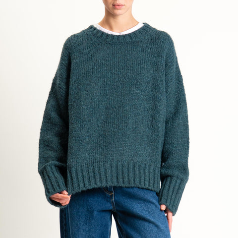 Vicolo-Maglia girocollo bordi a coste misto lana - verde bottoglia