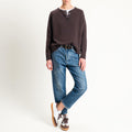 Tensione in-Maglia scatola misto cashmere scollo serafino - cioccolato