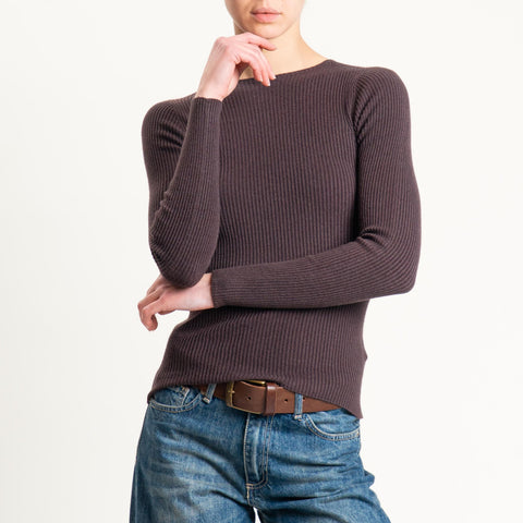 Tensione in-Maglia girocollo a costine - moro