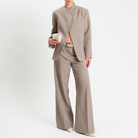 Vicolo-Giacca gessata chiusura con bottone asimmetrico - tortora