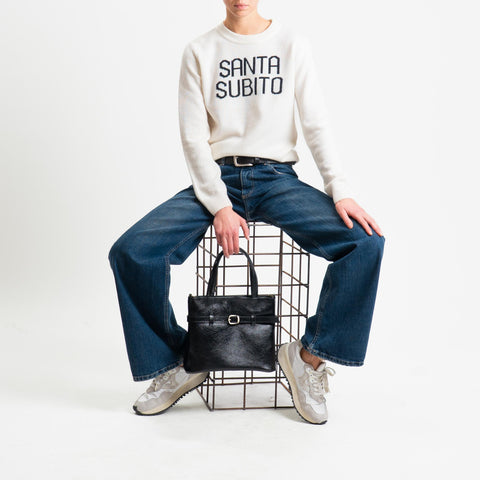 Tensione in-Maglia "SANTA SUBITO" misto cashmere - panna/nero