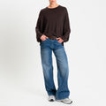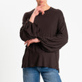 Tensione in-T-shirt in jersey di viscosa elasticizzata manica palloncino- moro