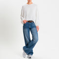 Tensione in-T-shirt in jersey di viscosa elasticizzata manica palloncino - panna