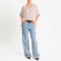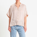 Motel-Camicia collo coreana manica scesa in satin - rose