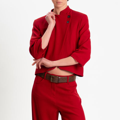 Tensione in-Giacca tessuto fluido chiusura asimmetrica - rosso