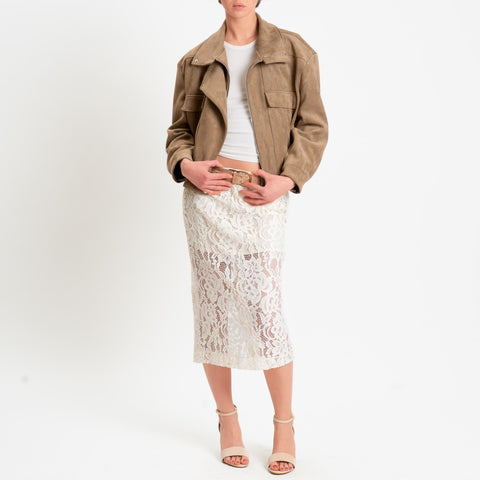 Tensione in-Gonna pizzo macramè elastico in vita - burro