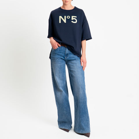 Tensione in-Felpa n5 mezza manica spacchi laterali - blu/avorio
