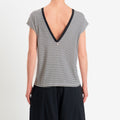 Souvenir-T-shirt a righe scollo v dietro - panna/nero