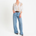 Tensione in-Camicia mussola misto seta con ricami - bianco/biscotto