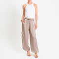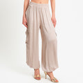 Motel-Pantalone cargo in satin elastico in vita - avena