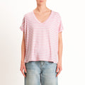 Zeroassoluto-T-shirt a righe scollo a v in jersey di viscosa elasticizzata - pink/latte