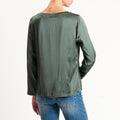 Tensione in-Blusa girocollo in satin elasticizzato - militare
