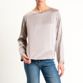 Tensione in-Blusa girocollo in satin elasticizzato - taupe