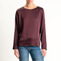 Tensione in-Blusa girocollo in satin elasticizzato - vino
