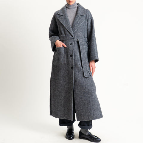 Vicolo-Cappotto spinato hand made misto lana con cintura art.VC/TF0103