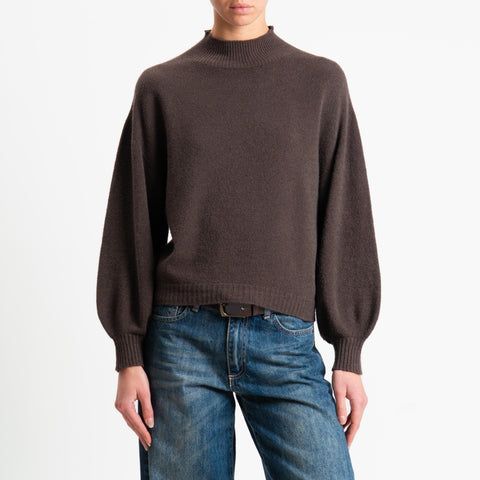 Suéter de cuello redondo con mangas populares de Haveone - Cacao