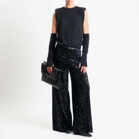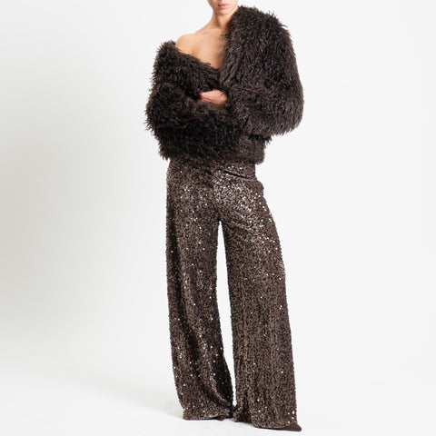 Haveone-Pantalone wide leg ciniglia con paillettes - moro