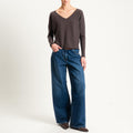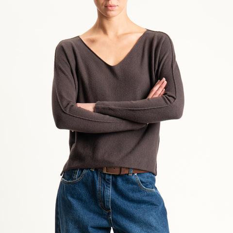 Zeroassoluto-Maglia scollo v con spacchi - cioccolato