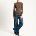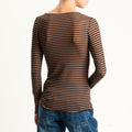 Tensione in-T-shirt a righe misto cashmere scollo taglio vivo - tabacco/nero