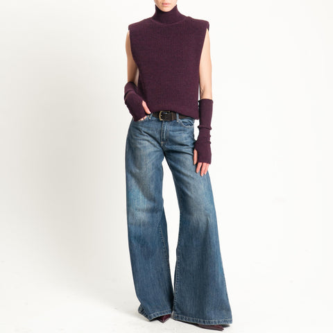Kontatto-Gilet misto lana con spalline e manicotti - melanzana