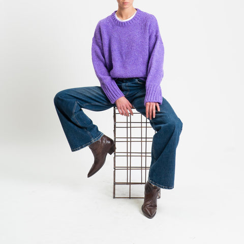 Vicolo-Maglia girocollo bordi a coste misto lana - glicine