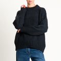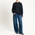 Vicolo-Maglia girocollo bordi a coste misto lana - nero