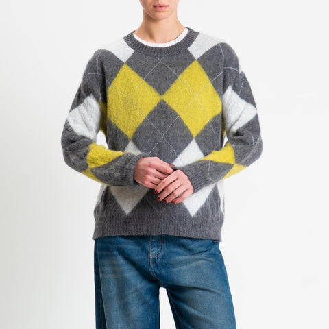 Motel-Maglia mohair rombi - antracite/giallo/naturale