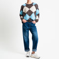 Motel-Maglia mohair rombi con spalline - moro/celeste/naturale
