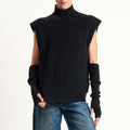 Vicolo-Maglia smanicata misto alpaca con manicotti - nero