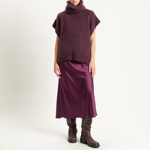 Dixie-Maglia mohair smanicata collo alto - prugna