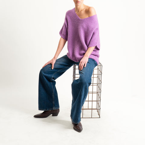 Zeroassoluto-Maglia scollo a v manica scesa BABY ALPACA SUPERFINE ELASTICIZZATA - mauve