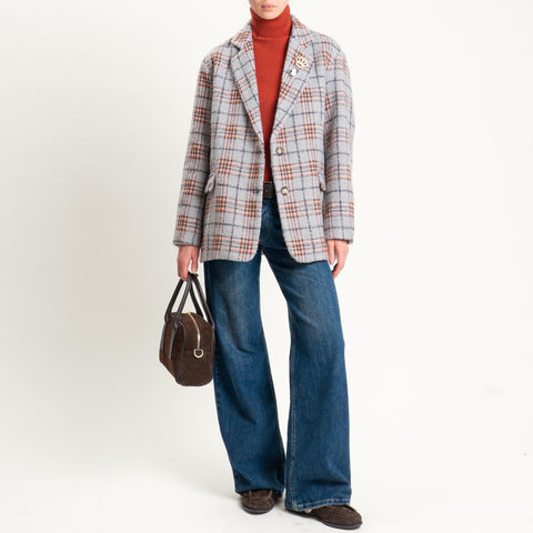 Dixie-Giacca over check con spille - grigio/orange/moro