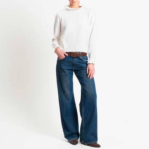 Souvenir-Maglia collo alto bordi con rouches - panna