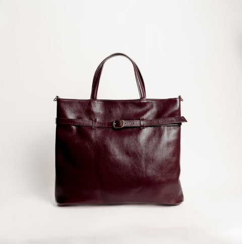 Zeroassoluto-Tote bag genuine leather high quality VINTAGE LOOK - Bordeaux