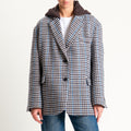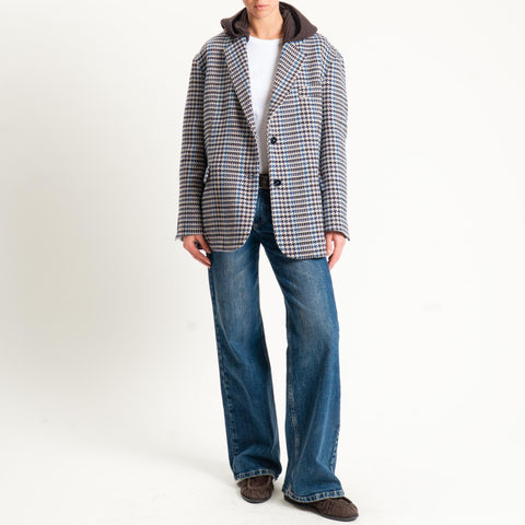 Vicolo-Giacca pied de poule misto lana con cappuccio - moro/latte/azzurro